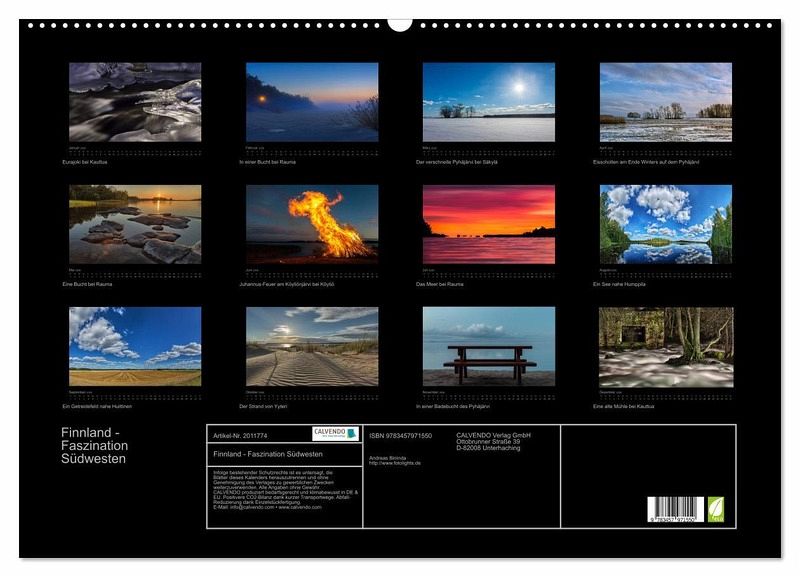 Auf 12 beeidruckenden Bildern zeigt der Kalender die Faszination des Südwesten Finnlands. Die stimmungsvollen Bilder stellen die Schönheit dieser Region zu den verschiedenen Jahres- und Tageszeiten dar.
