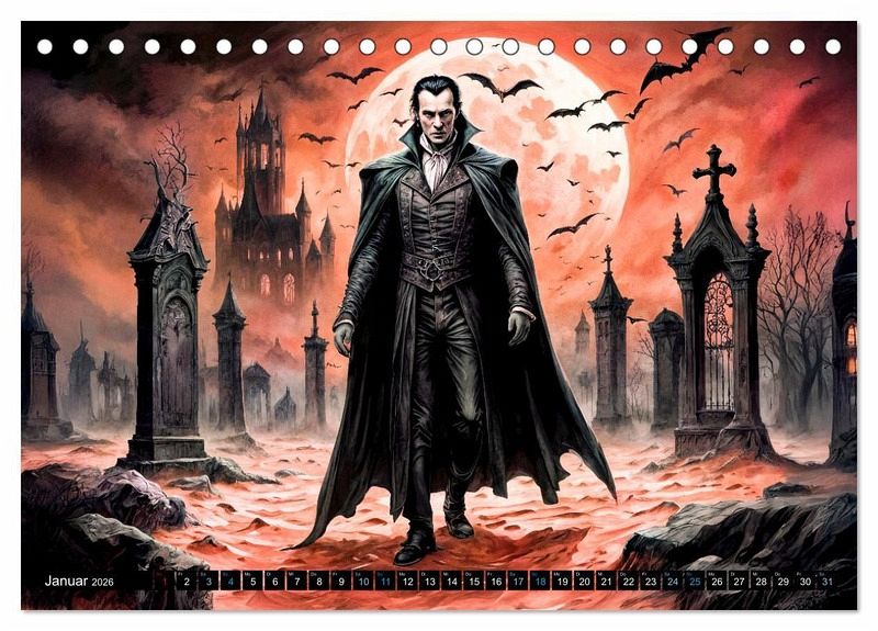 Der "Finsternis der Vampire - Mystischer, düsterer Fantasy-Kalender" entführt dich in eine Welt voller dunkler Schönheit und unsterblicher Faszination. Mit 12 atmosphärischen KI-generierten Illustrationen zeigt dieser Kalender sowohl verführerische als auch furchteinflößende Vampire in mystischen Szenerien. Perfekt für Fans von düsterer Fantasy, Gothic-Kunst und der Legende von Dracula. Lass dich jeden Monat von der Magie der Nacht verzaubern!