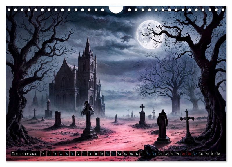 Der "Finsternis der Vampire - Mystischer, düsterer Fantasy-Kalender" entführt dich in eine Welt voller dunkler Schönheit und unsterblicher Faszination. Mit 12 atmosphärischen KI-generierten Illustrationen zeigt dieser Kalender sowohl verführerische als auch furchteinflößende Vampire in mystischen Szenerien. Perfekt für Fans von düsterer Fantasy, Gothic-Kunst und der Legende von Dracula. Lass dich jeden Monat von der Magie der Nacht verzaubern!