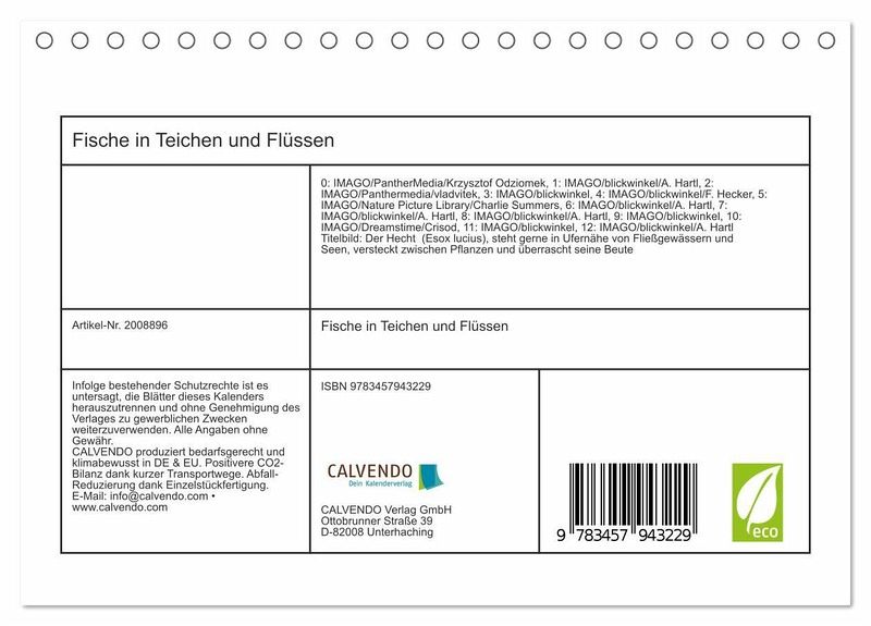 QUALITÄT - Hochwertiger Fotokalender mit 12 wunderschönen Motiven auf lichtbeständigem Bilderdruckpapier, robuste Spiralbindung.NACHHALTIG - deutliche Abfallreduzierung durch bedarfsgerechte Einzelstückfertigung, umweltfreundliches FSC-zertifiziertes Papier, Produktion in Deutschland, klimabewusste Logistik.PERFEKTES GESCHENK - Kalender für Freunde und Familie, für Kinder und Erwachsene, jung und alt, zu Weihnachten, Geburtstag oder zwischendurch.VIELFALT - Bildkalender in verschiedenen Formaten, z.B. DIN A5, DIN A4, DIN A3 sowie DIN A2. Ob Naturmotiv, Gemälde oder Fotos, ideal für ein persönliches Wohlfühlambiente.Großartige Unterwasseraufnahmen von Fischen in unseren Gewässern von Autor(in): CALVENDO Verlag