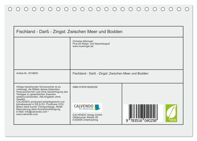 QUALITÄT - Hochwertiger Fotokalender mit 12 wunderschönen Motiven auf lichtbeständigem Bilderdruckpapier, robuste Spiralbindung.NACHHALTIG - deutliche Abfallreduzierung durch bedarfsgerechte Einzelstückfertigung, umweltfreundliches FSC-zertifiziertes Papier, Produktion in Deutschland, klimabewusste Logistik.PERFEKTES GESCHENK - Kalender für Freunde und Familie, für Kinder und Erwachsene, jung und alt, zu Weihnachten, Geburtstag oder zwischendurch.VIELFALT - Bildkalender in verschiedenen Formaten, z.B. DIN A5, DIN A4, DIN A3 sowie DIN A2. Ob Naturmotiv, Gemälde oder Fotos, ideal für ein persönliches Wohlfühlambiente.Eine ursprüngliche Landschaft zwischen rauer See und stillem Bodden, geformt von Wind und Wellen. von Autor(in): Christian Müringer
