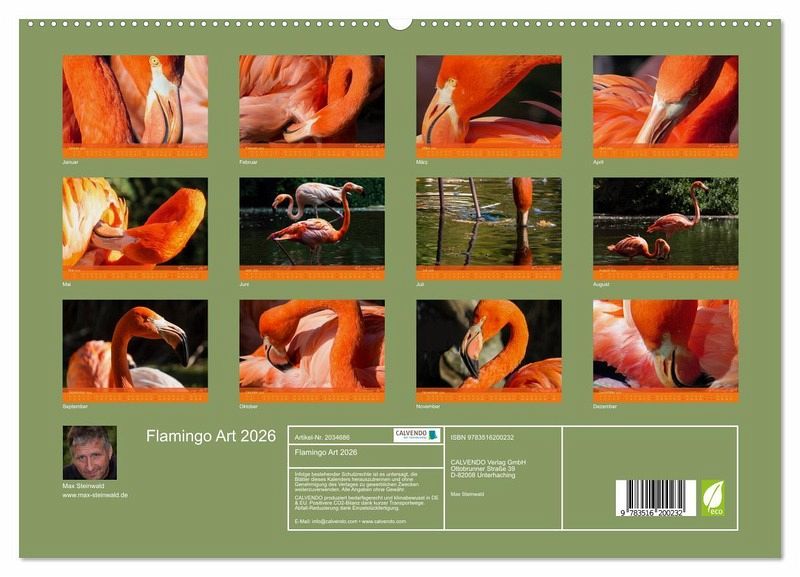 PREMIUM-LINIE - Brillanter Fotokalender mit 12 wunderschönen Motiven, Kunstdruck in Hochglanz in Museumsqualität.QUALITÄT - edle Materialien, stabile Rückwand mit 2 innovativen Einstecktaschen für eine optimale Präsentation an der Wand.NACHHALTIG - deutliche Abfallreduzierung durch bedarfsgerechte Einzelstückfertigung, umweltfreundliches FSC-zertifiziertes Papier, Produktion in Deutschland, klimabewusste Logistik.PERFEKTES GESCHENK - Kalender für Freunde und Familie, für Kinder und Erwachsene, jung und alt, zu Weihnachten, Geburtstag oder zwischendurch.Flamingo Art - Ein absoluter Blickfang im Büro und zu Hause von Autor(in): Max Steinwald