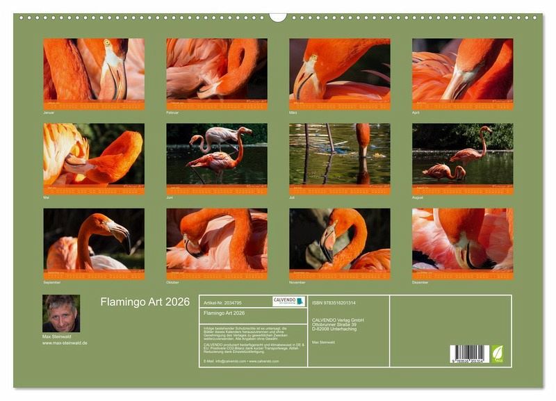 QUALITÄT - Hochwertiger Fotokalender mit 12 wunderschönen Motiven auf lichtbeständigem Bilderdruckpapier, robuste Spiralbindung mit Aufhängebügel.NACHHALTIG - deutliche Abfallreduzierung durch bedarfsgerechte Einzelstückfertigung, umweltfreundliches FSC-zertifiziertes Papier, Produktion in Deutschland, klimabewusste Logistik.PERFEKTES GESCHENK - Kalender für Freunde und Familie, für Kinder und Erwachsene, jung und alt, zu Weihnachten, Geburtstag oder zwischendurch.VIELFALT - Bildkalender in verschiedenen Formaten, z.B. DIN A5, DIN A4, DIN A3 sowie DIN A2. Ob Naturmotiv, Gemälde oder Fotos, ideal für ein persönliches Wohlfühlambiente.Flamingo Art - Ein absoluter Blickfang im Büro und zu Hause von Autor(in): Max Steinwald