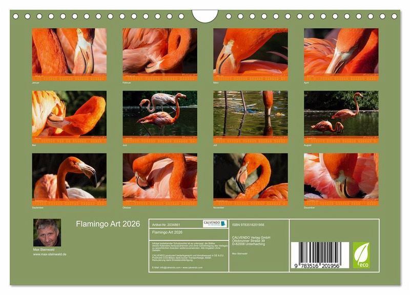 QUALITÄT - Hochwertiger Fotokalender mit 12 wunderschönen Motiven auf lichtbeständigem Bilderdruckpapier, robuste Spiralbindung mit Aufhängebügel.NACHHALTIG - deutliche Abfallreduzierung durch bedarfsgerechte Einzelstückfertigung, umweltfreundliches FSC-zertifiziertes Papier, Produktion in Deutschland, klimabewusste Logistik.PERFEKTES GESCHENK - Kalender für Freunde und Familie, für Kinder und Erwachsene, jung und alt, zu Weihnachten, Geburtstag oder zwischendurch.VIELFALT - Bildkalender in verschiedenen Formaten, z.B. DIN A5, DIN A4, DIN A3 sowie DIN A2. Ob Naturmotiv, Gemälde oder Fotos, ideal für ein persönliches Wohlfühlambiente.Flamingo Art - Ein absoluter Blickfang im Büro und zu Hause von Autor(in): Max Steinwald