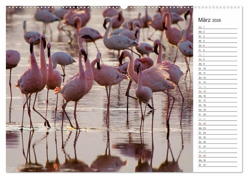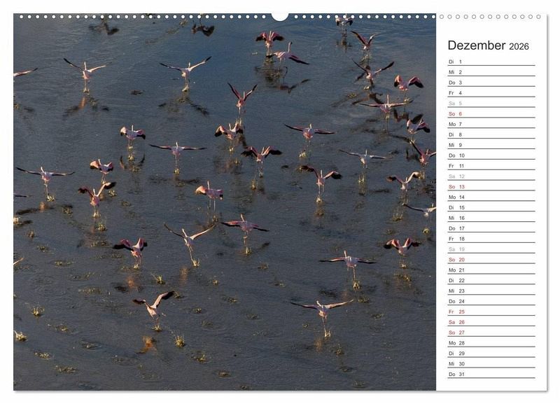 Am Lake Nakuru und am Lake Elementaita in Kenia gibt es zahlreiche Rosa Flamingos. Über mehrere Jahre hinweg hat der renommierte Fotograf Ingo Gerlach GDT dieses grazilen Vögel - auch aus der Luft - beobachtet und natürlich auch fotografiert. Tragen Sie ihre Termine, Geburtstage bequem in den Planer ein.