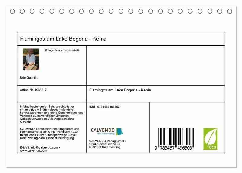 QUALITÄT - Hochwertiger Fotokalender mit 12 wunderschönen Motiven auf lichtbeständigem Bilderdruckpapier, robuste Spiralbindung.NACHHALTIG - deutliche Abfallreduzierung durch bedarfsgerechte Einzelstückfertigung, umweltfreundliches FSC-zertifiziertes Papier, Produktion in Deutschland, klimabewusste Logistik.PERFEKTES GESCHENK - Kalender für Freunde und Familie, für Kinder und Erwachsene, jung und alt, zu Weihnachten, Geburtstag oder zwischendurch.VIELFALT - Bildkalender in verschiedenen Formaten, z.B. DIN A5, DIN A4, DIN A3 sowie DIN A2. Ob Naturmotiv, Gemälde oder Fotos, ideal für ein persönliches Wohlfühlambiente.Flamingos am Lake Bogoria Rift Valley Kenia von Autor(in): Udo Quentin
