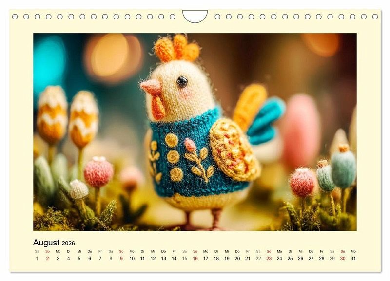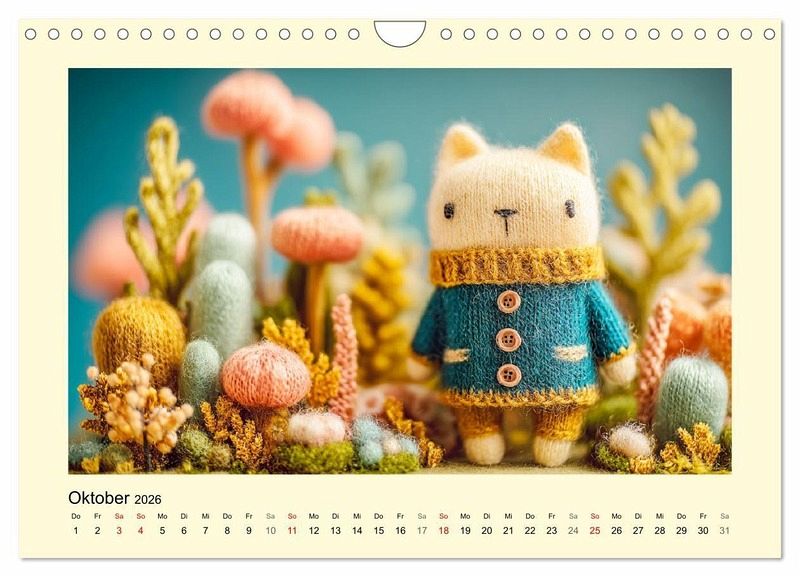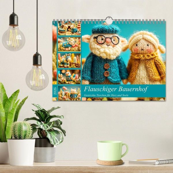 Dieser Kalender entführt in eine idyllische Wollwelt, in der jedes Tier mit zarter Hand gestrickt wurde. Von der niedlichen Henne bis zum süßen Schaf - jedes Motiv wurde mit der Hilfe von KI erstellt und verströmt ländliche Ruhe und Geborgenheit. Die dezenten Landhausfarben schenken den Bildern eine natürliche und harmonische Atmosphäre. Illustartionen die Monat für Monat das Herz erwärmen und ein Lächeln schenken - einfach liebenswert.