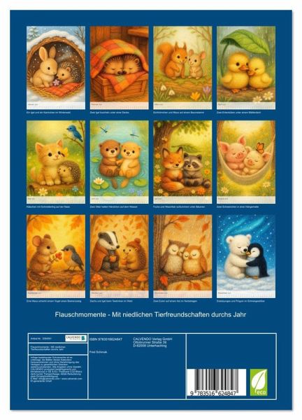 QUALITÄT - Hochwertiger Fotokalender mit 12 wunderschönen Motiven auf lichtbeständigem Bilderdruckpapier, robuste Spiralbindung mit Aufhängebügel.NACHHALTIG - deutliche Abfallreduzierung durch bedarfsgerechte Einzelstückfertigung, umweltfreundliches FSC-zertifiziertes Papier, Produktion in Deutschland, klimabewusste Logistik.PERFEKTES GESCHENK - Kalender für Freunde und Familie, für Kinder und Erwachsene, jung und alt, zu Weihnachten, Geburtstag oder zwischendurch.VIELFALT - Bildkalender in verschiedenen Formaten, z.B. DIN A5, DIN A4, DIN A3 sowie DIN A2. Ob Naturmotiv, Gemälde oder Fotos, ideal für ein persönliches Wohlfühlambiente.Tierische Kuschelmomente fürs Herz von Autor(in): Michaela Spreider