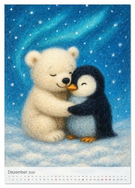 Dieser liebevoll gestaltete Kalender zeigt zwölf niedliche Tierfreundschaften in kuscheliger Filz-/Wolloptik, ideal für Groß und Klein. Die stimmungsvollen Motive wurden mit Hilfe von Künstlicher Intelligenz erstellt und erzählen jeden Monat eine herzerwärmende Mini-Geschichte voller Nähe, Wärme und Freundschaft. Ein Kalender zum Schmunzeln, Entschleunigen und Wohlfühlen.