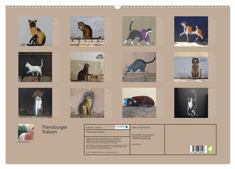 QUALITÄT - Hochwertiger Fotokalender mit 12 wunderschönen Motiven auf lichtbeständigem Bilderdruckpapier, robuste Spiralbindung mit Aufhängebügel.NACHHALTIG - deutliche Abfallreduzierung durch bedarfsgerechte Einzelstückfertigung, umweltfreundliches FSC-zertifiziertes Papier, Produktion in Deutschland, klimabewusste Logistik.PERFEKTES GESCHENK - Kalender für Freunde und Familie, für Kinder und Erwachsene, jung und alt, zu Weihnachten, Geburtstag oder zwischendurch.VIELFALT - Bildkalender in verschiedenen Formaten, z.B. DIN A5, DIN A4, DIN A3 sowie DIN A2. Ob Naturmotiv, Gemälde oder Fotos, ideal für ein persönliches Wohlfühlambiente.Flensburger Katzen - Streetart von Autor(in): Martina Busch