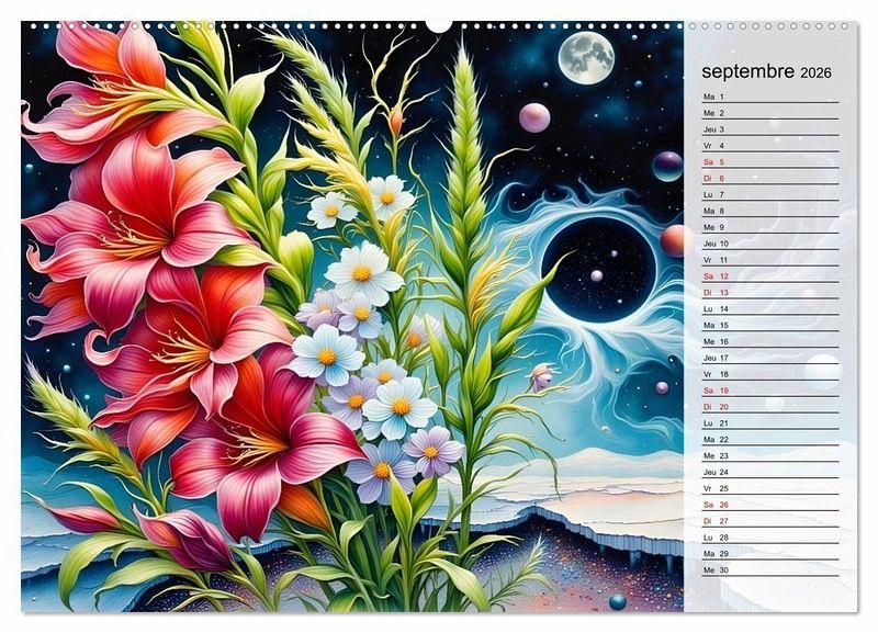 Plongez dans l'univers merveilleux d'un magnifique calendrier où l'intelligence artificielle rencontre la beauté incomparable des fleurs et leur donne vie. Chaque image incarne la grâce des fleurs avec leur apparence nocturne envoûtante et leur aura mystérieuse. Capturez l'essence du conte de fées floral et donnez à votre pièce une atmosphère magique, ou offrez-le comme cadeau parfait à vos amis amateurs de fleurs.