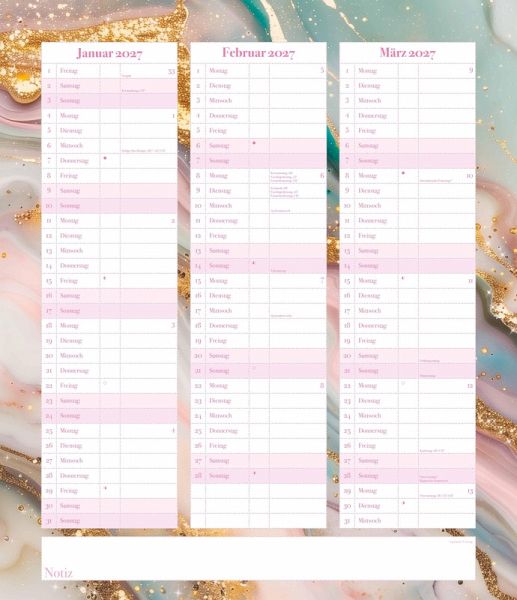 Ein Familienkalender, der nicht nur Ordnung schafft, sondern auch mit seinem edlen Design begeistert perfekt für alle, die Glamour und Struktur in ihrem Alltag vereinen möchten.