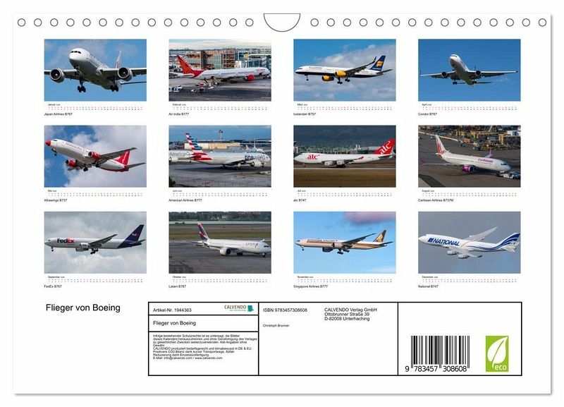 QUALITÄT - Hochwertiger Fotokalender mit 12 wunderschönen Motiven auf lichtbeständigem Bilderdruckpapier, robuste Spiralbindung mit Aufhängebügel.NACHHALTIG - deutliche Abfallreduzierung durch bedarfsgerechte Einzelstückfertigung, umweltfreundliches FSC-zertifiziertes Papier, Produktion in Deutschland, klimabewusste Logistik.PERFEKTES GESCHENK - Kalender für Freunde und Familie, für Kinder und Erwachsene, jung und alt, zu Weihnachten, Geburtstag oder zwischendurch.VIELFALT - Bildkalender in verschiedenen Formaten, z.B. DIN A5, DIN A4, DIN A3 sowie DIN A2. Ob Naturmotiv, Gemälde oder Fotos, ideal für ein persönliches Wohlfühlambiente.Ein Monatskalender für das Jahr 2025 mit dem Thema Flieger von Boeing. von Autor(in): Christoph Brunner