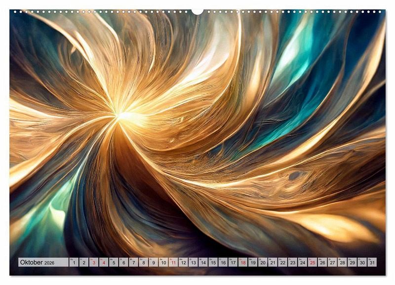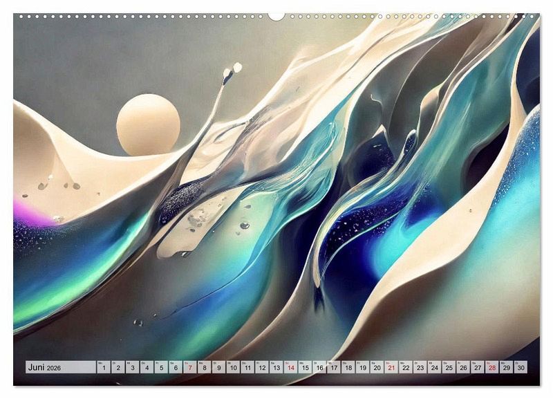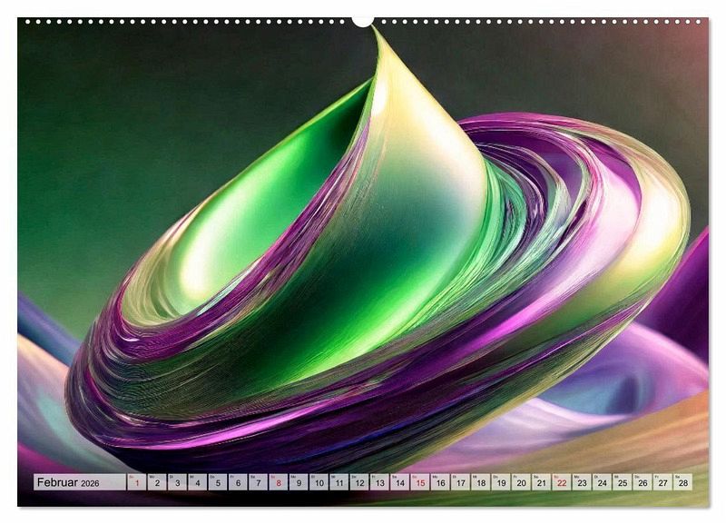 Lassen Sie sich ein auf die abstrakten Darstellungen mit unserem Bildkalender. Jeder Monat präsentiert ein sehenswertes Bild, das mithilfe künstlicher Intelligenz geschaffen wurde und durch weiche, fließende Formen beeindruckt. Es ist nicht Sinn des Kalenders, auch Interpretationen für die Bilder mitzuliefern, aber insgesamt ließe sich sagen, dass weiche, fließende Formen leicht ein positives Lebensgefühl symbolisieren können. Doch natürlich soll jeder Betrachter seine eigene Interpretation finden oder sich einfach an den dekorativen Formen erfreuen, die für jede Wand einen eindrucksvollen Blickfang bilden.