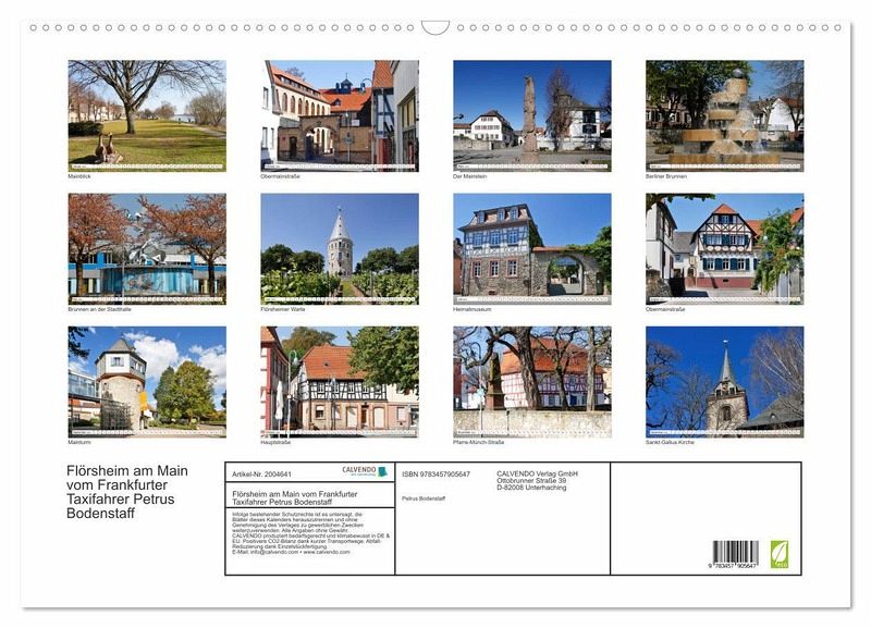 QUALITÄT - Hochwertiger Fotokalender mit 12 wunderschönen Motiven auf lichtbeständigem Bilderdruckpapier, robuste Spiralbindung mit Aufhängebügel.NACHHALTIG - deutliche Abfallreduzierung durch bedarfsgerechte Einzelstückfertigung, umweltfreundliches FSC-zertifiziertes Papier, Produktion in Deutschland, klimabewusste Logistik.PERFEKTES GESCHENK - Kalender für Freunde und Familie, für Kinder und Erwachsene, jung und alt, zu Weihnachten, Geburtstag oder zwischendurch.VIELFALT - Bildkalender in verschiedenen Formaten, z.B. DIN A5, DIN A4, DIN A3 sowie DIN A2. Ob Naturmotiv, Gemälde oder Fotos, ideal für ein persönliches Wohlfühlambiente.Flörsheim idyllisch am Main nicht weit weg von Frankfurt am Main von Autor(in): Petrus Bodenstaff