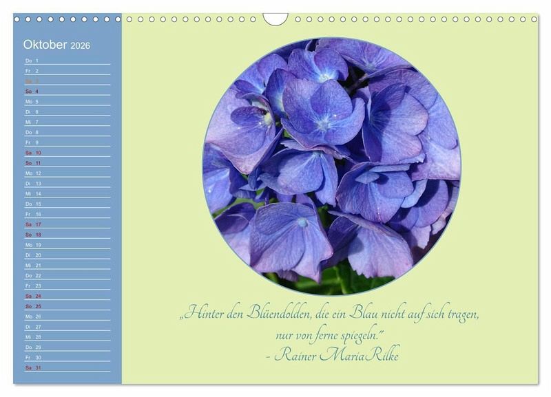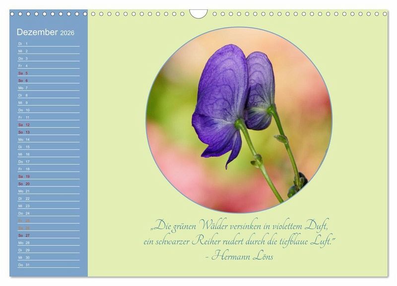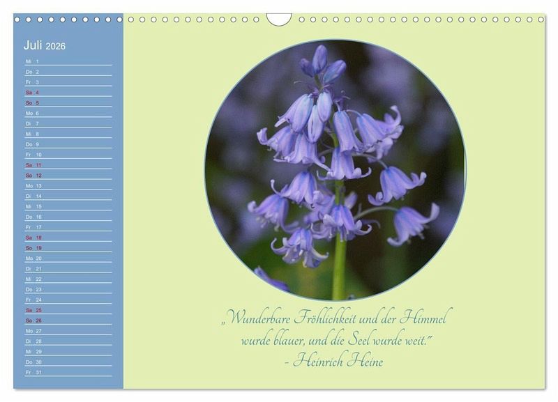 QUALITÄT - Hochwertiger Fotokalender mit 12 wunderschönen Motiven auf lichtbeständigem Bilderdruckpapier, robuste Spiralbindung mit Aufhängebügel.NACHHALTIG - deutliche Abfallreduzierung durch bedarfsgerechte Einzelstückfertigung, umweltfreundliches FSC-zertifiziertes Papier, Produktion in Deutschland, klimabewusste Logistik.PERFEKTES GESCHENK - Kalender für Freunde und Familie, für Kinder und Erwachsene, jung und alt, zu Weihnachten, Geburtstag oder zwischendurch.VIELFALT - Bildkalender in verschiedenen Formaten, z.B. DIN A5, DIN A4, DIN A3 sowie DIN A2. Ob Naturmotiv, Gemälde oder Fotos, ideal für ein persönliches Wohlfühlambiente.Blaue Blüten mit poesievollen Zitaten. von Autor(in): White_hart_photo_art
