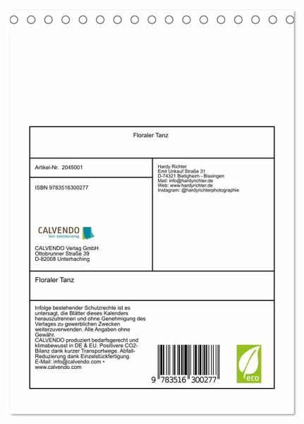 QUALITÄT - Hochwertiger Fotokalender mit 12 wunderschönen Motiven auf lichtbeständigem Bilderdruckpapier, robuste Spiralbindung.NACHHALTIG - deutliche Abfallreduzierung durch bedarfsgerechte Einzelstückfertigung, umweltfreundliches FSC-zertifiziertes Papier, Produktion in Deutschland, klimabewusste Logistik.PERFEKTES GESCHENK - Kalender für Freunde und Familie, für Kinder und Erwachsene, jung und alt, zu Weihnachten, Geburtstag oder zwischendurch.VIELFALT - Bildkalender in verschiedenen Formaten, z.B. DIN A5, DIN A4, DIN A3 sowie DIN A2. Ob Naturmotiv, Gemälde oder Fotos, ideal für ein persönliches Wohlfühlambiente.Floraler Tanz - alles ist in Bewegung von Autor(in): Hardy Richter