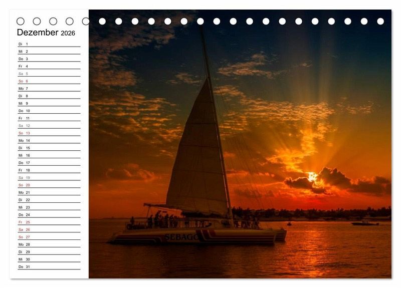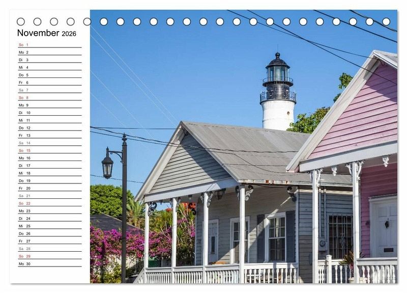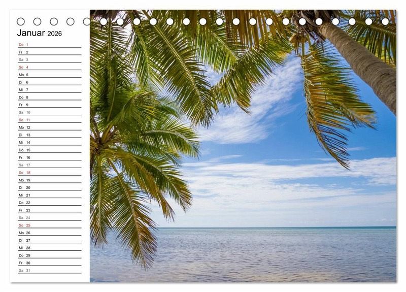 Über 42 Brücken verläuft die Route von Miami nach Key West. Ein türkisfarbener Ozean und weiße traumhafte Strände mit wunderschönen Palmen sind die weite Fahrt durch kleine, bunte und verträumte Orte wie Key Largo, Islamorada und Marathon wert. Erleben Sie die Inselkette im Süden Floridas mit 13 ausgewählten Motiven in diesem idyllischen Terminplaner.