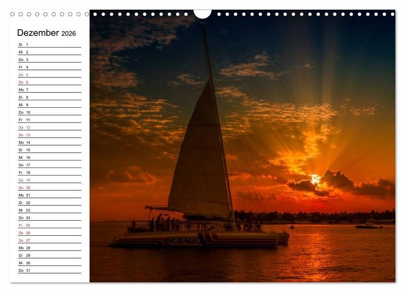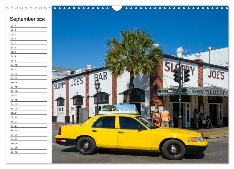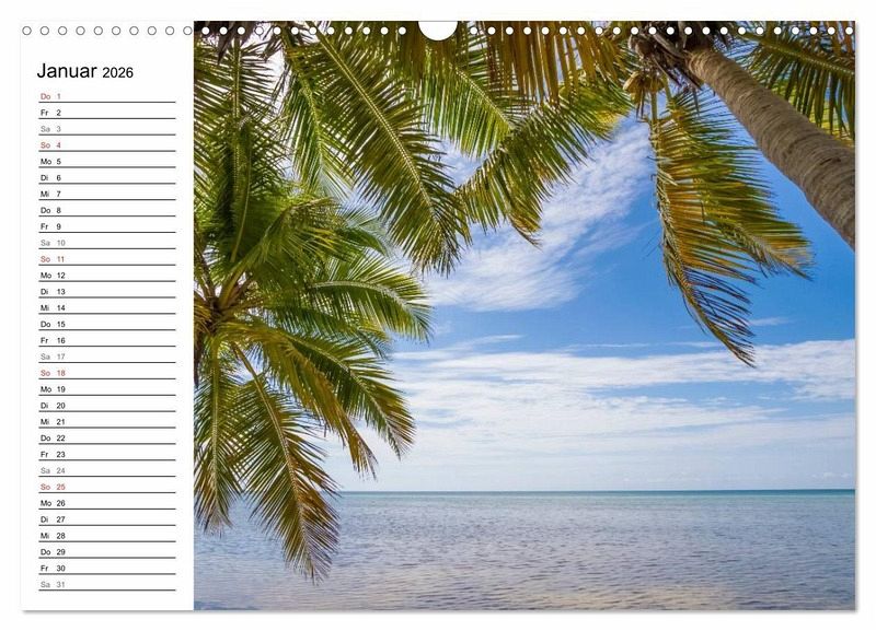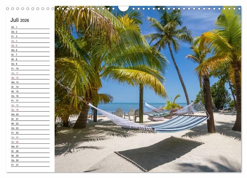 Über 42 Brücken verläuft die Route von Miami nach Key West. Ein türkisfarbener Ozean und weiße traumhafte Strände mit wunderschönen Palmen sind die weite Fahrt durch kleine, bunte und verträumte Orte wie Key Largo, Islamorada und Marathon wert. Erleben Sie die Inselkette im Süden Floridas mit 13 ausgewählten Motiven in diesem idyllischen Terminplaner.
