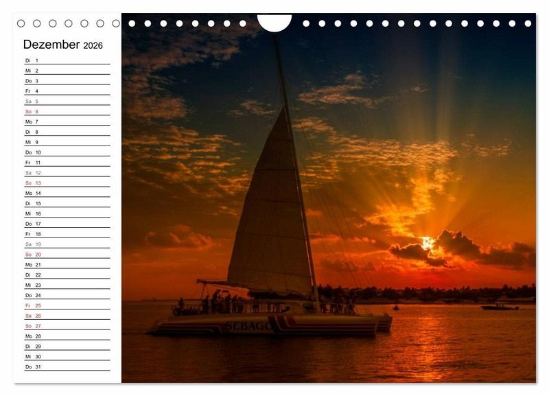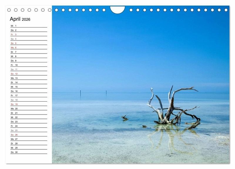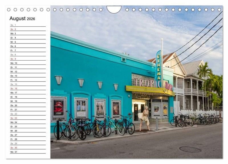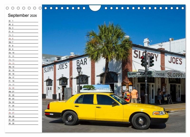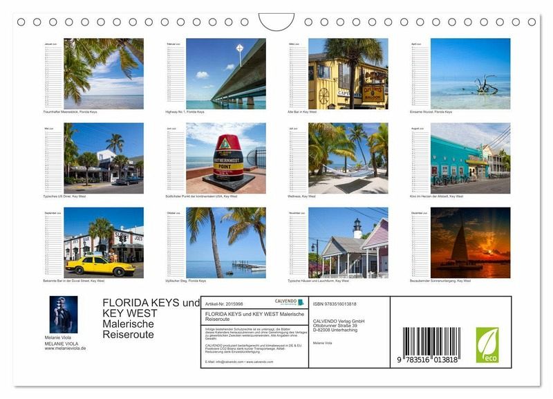 Über 42 Brücken verläuft die Route von Miami nach Key West. Ein türkisfarbener Ozean und weiße traumhafte Strände mit wunderschönen Palmen sind die weite Fahrt durch kleine, bunte und verträumte Orte wie Key Largo, Islamorada und Marathon wert. Erleben Sie die Inselkette im Süden Floridas mit 13 ausgewählten Motiven in diesem idyllischen Terminplaner.