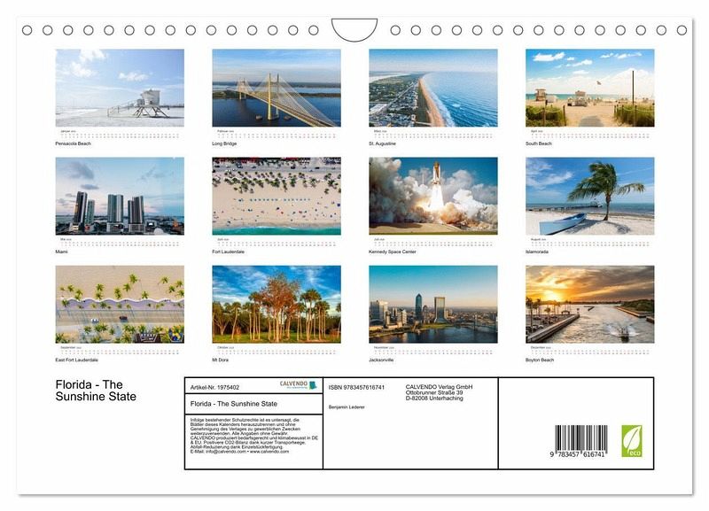 QUALITÄT - Hochwertiger Fotokalender mit 12 wunderschönen Motiven auf lichtbeständigem Bilderdruckpapier, robuste Spiralbindung mit Aufhängebügel.NACHHALTIG - deutliche Abfallreduzierung durch bedarfsgerechte Einzelstückfertigung, umweltfreundliches FSC-zertifiziertes Papier, Produktion in Deutschland, klimabewusste Logistik.PERFEKTES GESCHENK - Kalender für Freunde und Familie, für Kinder und Erwachsene, jung und alt, zu Weihnachten, Geburtstag oder zwischendurch.VIELFALT - Bildkalender in verschiedenen Formaten, z.B. DIN A5, DIN A4, DIN A3 sowie DIN A2. Ob Naturmotiv, Gemälde oder Fotos, ideal für ein persönliches Wohlfühlambiente.Dort, wo immer die Sonne scheint. Entdecken Sie den Sunshine State Florida. von Autor(in): Benjamin Lederer
