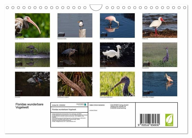 QUALITÄT - Hochwertiger Fotokalender mit 12 wunderschönen Motiven auf lichtbeständigem Bilderdruckpapier, robuste Spiralbindung mit Aufhängebügel.NACHHALTIG - deutliche Abfallreduzierung durch bedarfsgerechte Einzelstückfertigung, umweltfreundliches FSC-zertifiziertes Papier, Produktion in Deutschland, klimabewusste Logistik.PERFEKTES GESCHENK - Kalender für Freunde und Familie, für Kinder und Erwachsene, jung und alt, zu Weihnachten, Geburtstag oder zwischendurch.VIELFALT - Bildkalender in verschiedenen Formaten, z.B. DIN A5, DIN A4, DIN A3 sowie DIN A2. Ob Naturmotiv, Gemälde oder Fotos, ideal für ein persönliches Wohlfühlambiente.Entdecke die Vogelwelt Floridas in einem einzigartigen Fotokalender von Autor(in): Andreas Klesse