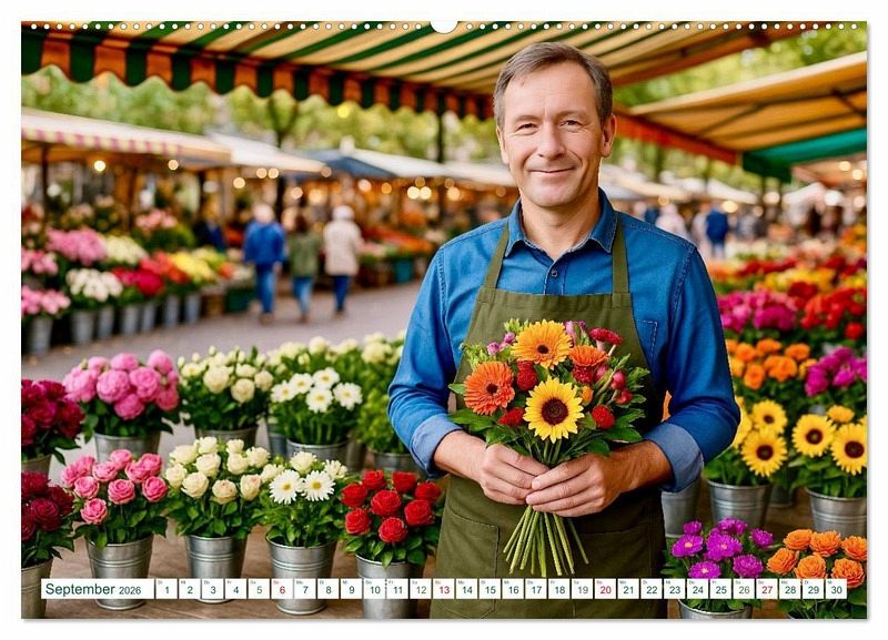 Dieser hochwertige Kalender zeigt Monat für Monat authentische Szenen aus dem Alltag leidenschaftlicher Floristinnen und Floristen - vom kunstvollen Straußbinden bis zum lebendigen Markttreiben. Die Bilder, die Steffani Lehmann mit Unterstützung einer KI editiert hat, sind farbenfroh, inspirierend und voller Liebe zum Beruf - ein Muss für alle Blumenliebhaber!