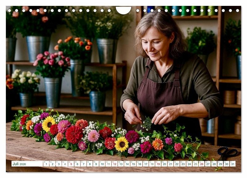 Dieser hochwertige Kalender zeigt Monat für Monat authentische Szenen aus dem Alltag leidenschaftlicher Floristinnen und Floristen - vom kunstvollen Straußbinden bis zum lebendigen Markttreiben. Die Bilder, die Steffani Lehmann mit Unterstützung einer KI editiert hat, sind farbenfroh, inspirierend und voller Liebe zum Beruf - ein Muss für alle Blumenliebhaber!