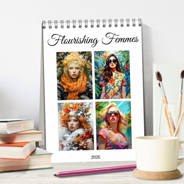 QUALITY - High-quality photo calendar with 12 beautiful images on light-resistant paper, robust spiral binding.SUSTAINABLE - Significant waste reduction due to print-on-demand production, environmentally friendly FSC-certified paper, produced locally, climate-conscious logistical processes.PERFECT GIFT - calendars for friends and family, for children, all ages and all occasions, from Christmas to birthdays and everything in between.LOTS OF CHOICE - Wall calendars in different sizes (DIN A4 and DIN A3), for any topic and personal taste, featuring photography, painting and illustrations.Embark on a journey through the realms of Flourishing Femmes calendar, where the ethereal charm of women transcends time, captivating your senses with their everlasting allure. von Autor(in): JBJart