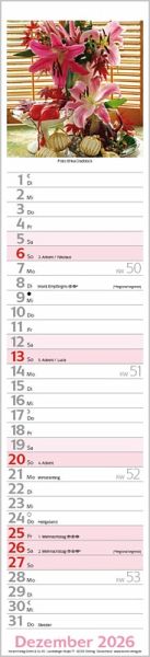 - Format: 11 x 48 cm; schmaler Wandkalender mit 12 einzigartigen Bildern