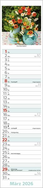 Praktischer Kalender mit viel Platz zum Eintragen und mit Fotos von bezaubernden Blumenarrangements.