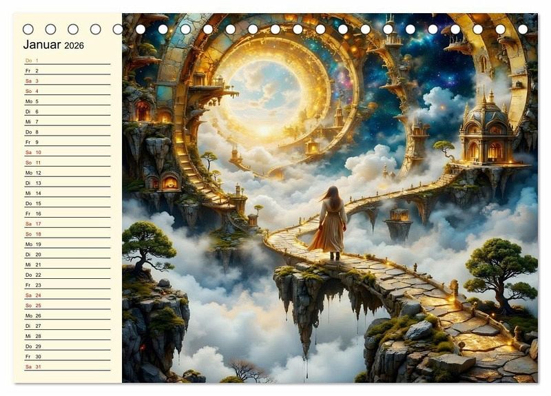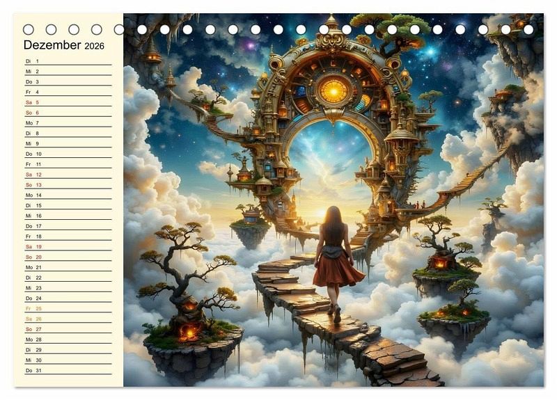 Tauchen Sie ein in weite des Horizonts, durchschreiten Sie glitzernde Schluchten des Lichts und verlieren Sie sich in verlockende surreale Welt. Diese Kalender ist Verschmelzung surreale Fantasie mit atemberaubender Realität und schenken Ihnen Momente purer Inspiration.
