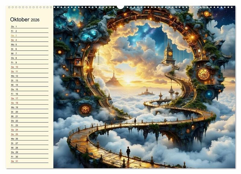 Tauchen Sie ein in weite des Horizonts, durchschreiten Sie glitzernde Schluchten des Lichts und verlieren Sie sich in verlockende surreale Welt. Diese Kalender ist Verschmelzung surreale Fantasie mit atemberaubender Realität und schenken Ihnen Momente purer Inspiration.