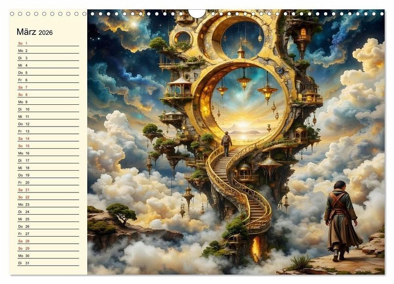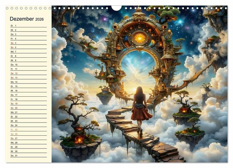 Tauchen Sie ein in weite des Horizonts, durchschreiten Sie glitzernde Schluchten des Lichts und verlieren Sie sich in verlockende surreale Welt. Diese Kalender ist Verschmelzung surreale Fantasie mit atemberaubender Realität und schenken Ihnen Momente purer Inspiration.
