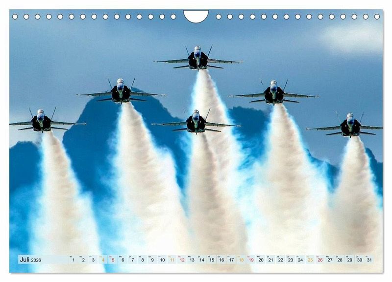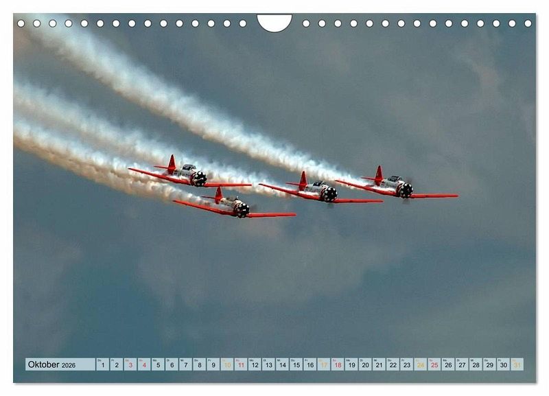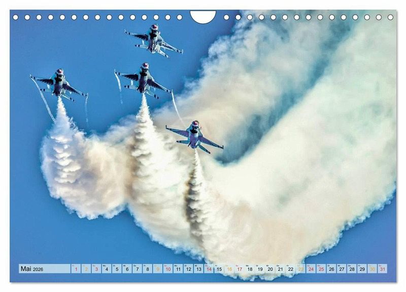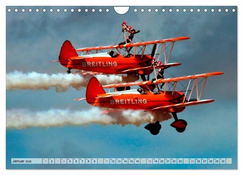 Jedes Jahr finden zahlreiche Flugschauen statt. Militärische Piloten zeigen Flugschau-Elemente, die als Vorbereitung für Luftkämpfe teilweise zum normalen Flugprogramm gehören. Aber auch wagemutige zivile Piloten beeindrucken durch ihre fliegerische Leistung in kleinen Kunstflugmaschinen. Nicht nur die Liebhaber kleiner und großer Flugzeuge werden von diesem Kalender begeistert sein.