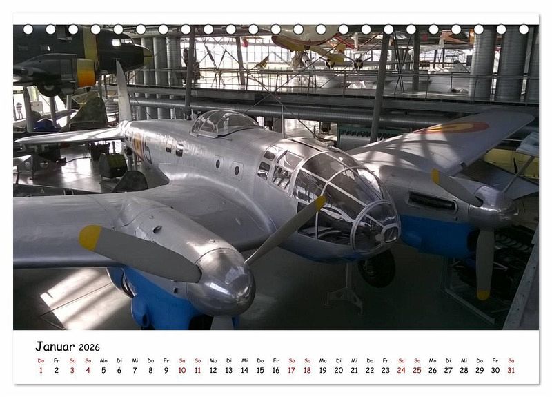 Auf dem Kalender ist eine Auswahl von den besten Bildern der Flugwerft in Schleißheim, es ist der Name eines technischen Museums in München. Die Flugwerft Schleißheim zeigt auf 7500 qm knapp hundert Fluggeräte und viele andere Exponate aus der Luft- und Raumfahrt.