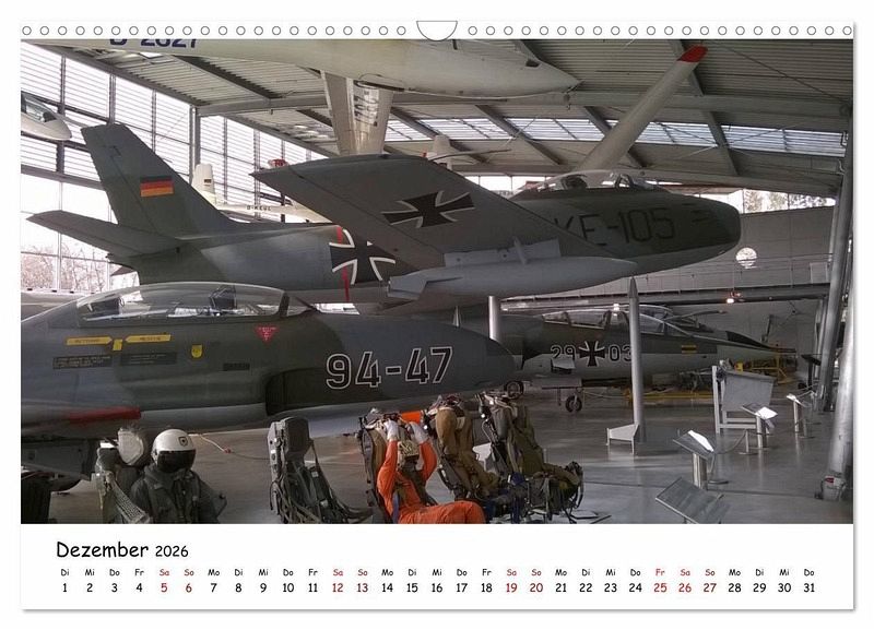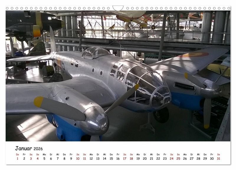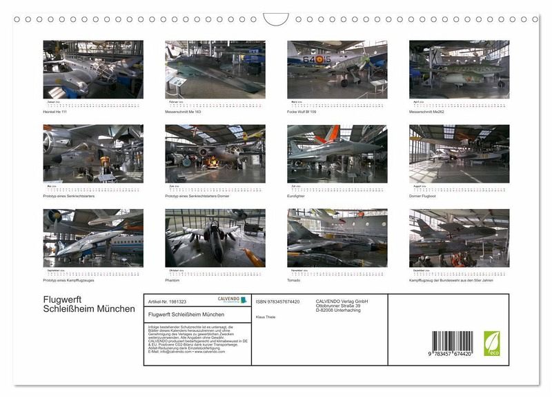 Auf dem Kalender ist eine Auswahl von den besten Bildern der Flugwerft in Schleißheim, es ist der Name eines technischen Museums in München. Die Flugwerft Schleißheim zeigt auf 7500 qm knapp hundert Fluggeräte und viele andere Exponate aus der Luft- und Raumfahrt.