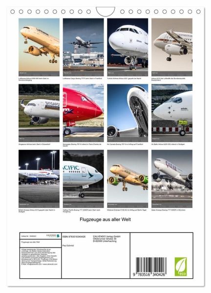 QUALITÄT - Hochwertiger Fotokalender mit 12 wunderschönen Motiven auf lichtbeständigem Bilderdruckpapier, robuste Spiralbindung mit Aufhängebügel.NACHHALTIG - deutliche Abfallreduzierung durch bedarfsgerechte Einzelstückfertigung, umweltfreundliches FSC-zertifiziertes Papier, Produktion in Deutschland, klimabewusste Logistik.PERFEKTES GESCHENK - Kalender für Freunde und Familie, für Kinder und Erwachsene, jung und alt, zu Weihnachten, Geburtstag oder zwischendurch.VIELFALT - Bildkalender in verschiedenen Formaten, z.B. DIN A5, DIN A4, DIN A3 sowie DIN A2. Ob Naturmotiv, Gemälde oder Fotos, ideal für ein persönliches Wohlfühlambiente.Flugzeuge international fotografiert von Luftfahrtfotograf Paul Schmid von Autor(in): Paul Schmid