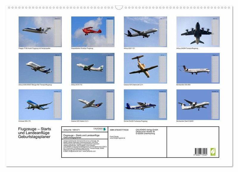 QUALITÄT - Hochwertiger Fotokalender mit 12 wunderschönen Motiven auf lichtbeständigem Bilderdruckpapier, robuste Spiralbindung mit Aufhängebügel.NACHHALTIG - deutliche Abfallreduzierung durch bedarfsgerechte Einzelstückfertigung, umweltfreundliches FSC-zertifiziertes Papier, Produktion in Deutschland, klimabewusste Logistik.PERFEKTES GESCHENK - Kalender für Freunde und Familie, für Kinder und Erwachsene, jung und alt, zu Weihnachten, Geburtstag oder zwischendurch.VIELFALT - Bildkalender in verschiedenen Formaten, z.B. DIN A5, DIN A4, DIN A3 sowie DIN A2. Ob Naturmotiv, Gemälde oder Fotos, ideal für ein persönliches Wohlfühlambiente.Dieser Kalender Planer zeigt eine Vielzahl an Flugzeuge nach dem Start und im Landeanflug. von Autor(in): Frank Gayde