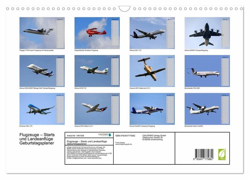 QUALITÄT - Hochwertiger Fotokalender mit 12 wunderschönen Motiven auf lichtbeständigem Bilderdruckpapier, robuste Spiralbindung mit Aufhängebügel.NACHHALTIG - deutliche Abfallreduzierung durch bedarfsgerechte Einzelstückfertigung, umweltfreundliches FSC-zertifiziertes Papier, Produktion in Deutschland, klimabewusste Logistik.PERFEKTES GESCHENK - Kalender für Freunde und Familie, für Kinder und Erwachsene, jung und alt, zu Weihnachten, Geburtstag oder zwischendurch.VIELFALT - Bildkalender in verschiedenen Formaten, z.B. DIN A5, DIN A4, DIN A3 sowie DIN A2. Ob Naturmotiv, Gemälde oder Fotos, ideal für ein persönliches Wohlfühlambiente.Dieser Kalender Planer zeigt eine Vielzahl an Flugzeuge nach dem Start und im Landeanflug. von Autor(in): Frank Gayde