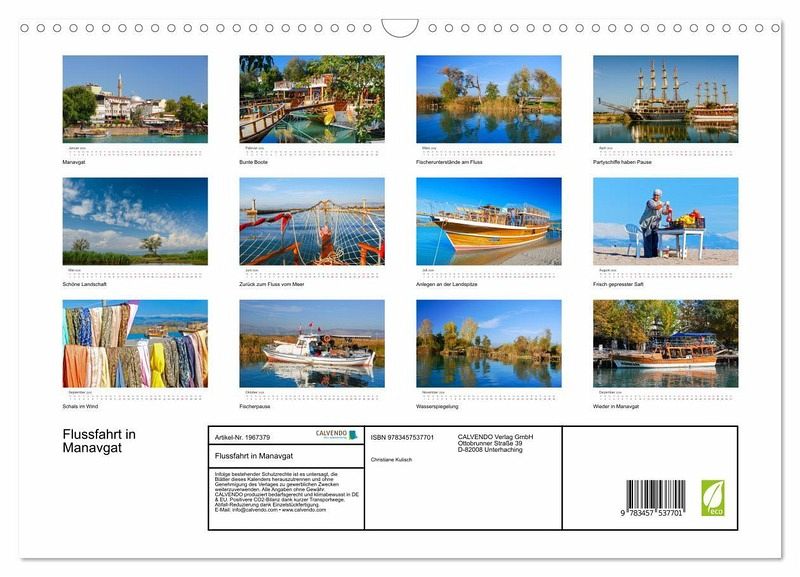 QUALITÄT - Hochwertiger Fotokalender mit 12 wunderschönen Motiven auf lichtbeständigem Bilderdruckpapier, robuste Spiralbindung mit Aufhängebügel.NACHHALTIG - deutliche Abfallreduzierung durch bedarfsgerechte Einzelstückfertigung, umweltfreundliches FSC-zertifiziertes Papier, Produktion in Deutschland, klimabewusste Logistik.PERFEKTES GESCHENK - Kalender für Freunde und Familie, für Kinder und Erwachsene, jung und alt, zu Weihnachten, Geburtstag oder zwischendurch.VIELFALT - Bildkalender in verschiedenen Formaten, z.B. DIN A5, DIN A4, DIN A3 sowie DIN A2. Ob Naturmotiv, Gemälde oder Fotos, ideal für ein persönliches Wohlfühlambiente.Ruhe und Entspannung auf dem Fluss in der Türkei von Autor(in): Christiane Kulisch
