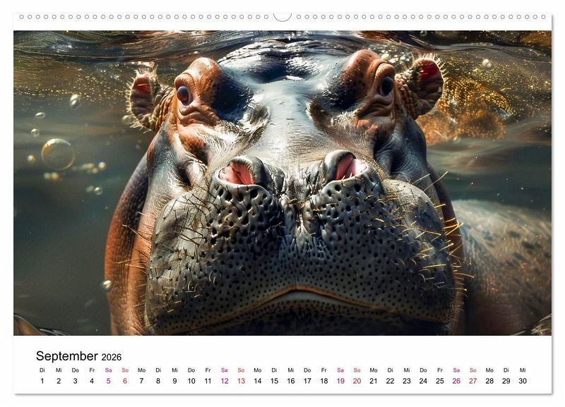 Begeben Sie sich in die Welt der Flusspferde mit diesem beeindruckenden Flusspferd-Kalender. Bestaunen Sie das faszinierende Leben und die Größe dieser großartigen Tiere. Werden Sie Zeuge ihres ruhigen Schlummerns im Wasser, bei dem nur Augen, Ohren und Nasenlöcher über der Wasseroberfläche schweben. Bewundern Sie ihre riesigen Mäuler und ihre gewaltigen Zähne, die für die Verteidigung und den Kampf unerlässlich sind. Der Fotokünstler Peter Roder hat für Sie imposante KI-Bilder gestaltet und zusammengestellt. Der perfekte Kalender für Tierliebhaber und Naturfreunde gleichermaßen!