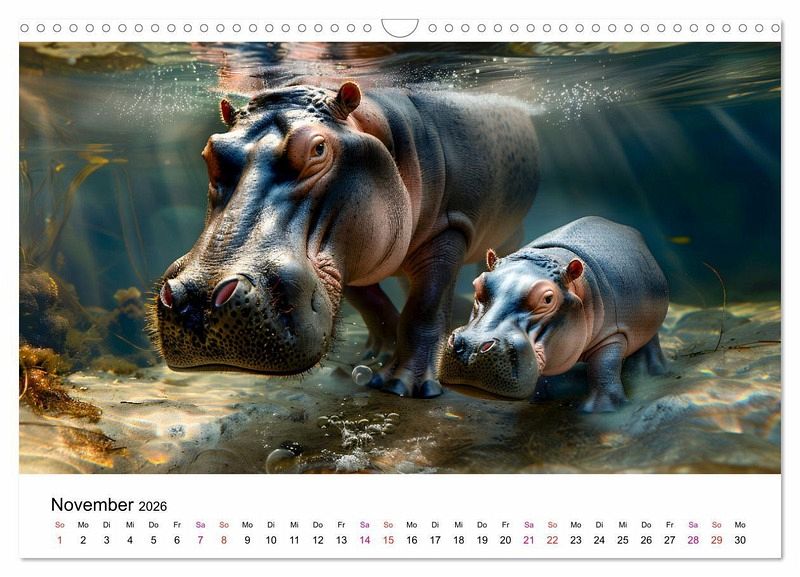 Begeben Sie sich in die Welt der Flusspferde mit diesem beeindruckenden Flusspferd-Kalender. Bestaunen Sie das faszinierende Leben und die Größe dieser großartigen Tiere. Werden Sie Zeuge ihres ruhigen Schlummerns im Wasser, bei dem nur Augen, Ohren und Nasenlöcher über der Wasseroberfläche schweben. Bewundern Sie ihre riesigen Mäuler und ihre gewaltigen Zähne, die für die Verteidigung und den Kampf unerlässlich sind. Der Fotokünstler Peter Roder hat für Sie imposante KI-Bilder gestaltet und zusammengestellt. Der perfekte Kalender für Tierliebhaber und Naturfreunde gleichermaßen!