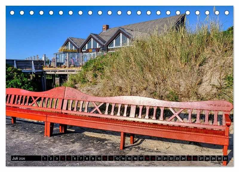 Juli: Sonnenuntergangsbank an der Promenade Utersum