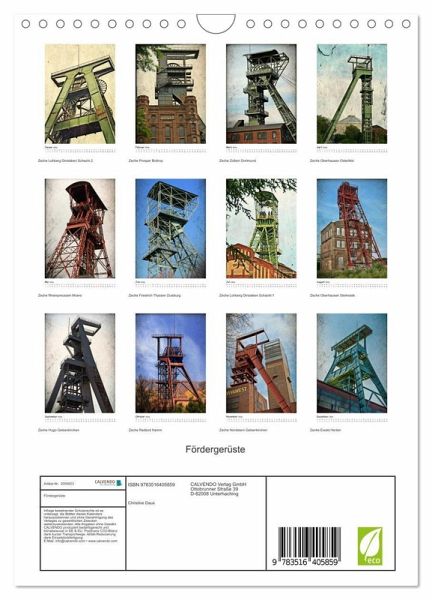 QUALITÄT - Hochwertiger Fotokalender mit 12 wunderschönen Motiven auf lichtbeständigem Bilderdruckpapier, robuste Spiralbindung mit Aufhängebügel.NACHHALTIG - deutliche Abfallreduzierung durch bedarfsgerechte Einzelstückfertigung, umweltfreundliches FSC-zertifiziertes Papier, Produktion in Deutschland, klimabewusste Logistik.PERFEKTES GESCHENK - Kalender für Freunde und Familie, für Kinder und Erwachsene, jung und alt, zu Weihnachten, Geburtstag oder zwischendurch.VIELFALT - Bildkalender in verschiedenen Formaten, z.B. DIN A5, DIN A4, DIN A3 sowie DIN A2. Ob Naturmotiv, Gemälde oder Fotos, ideal für ein persönliches Wohlfühlambiente.12 Fördergerüste aus dem Ruhrgebiet von Autor(in): Chris D.