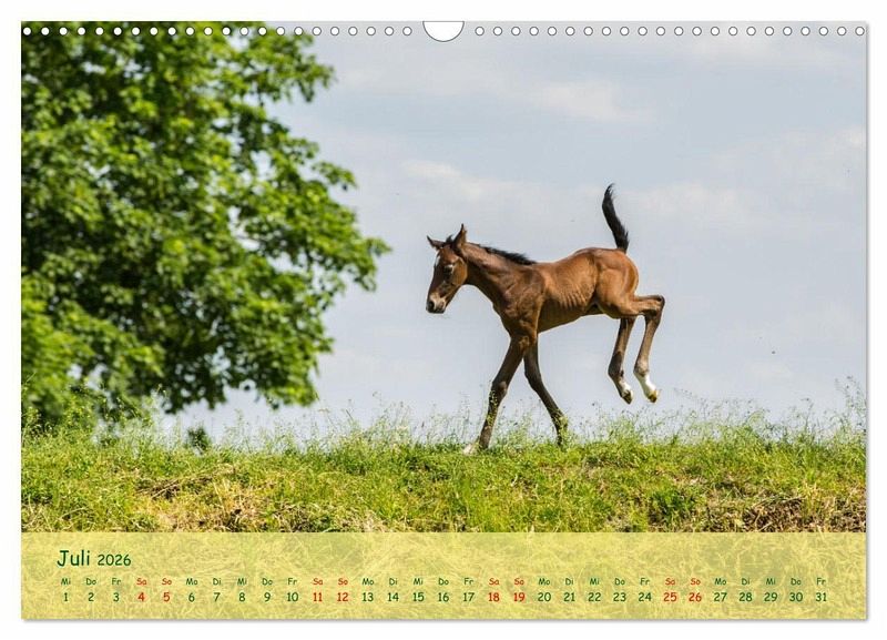 Die zauberhaften, kleinen Fohlen sind voller Tatendrang und neugirig auf die Welt um sie herum. Behütet von den Mutterstuten erkunden sie die Umgebung. Lassen Sie sich jeden Monat aufs Neue von diesen kleinen Kraftpaketen verzaubern.