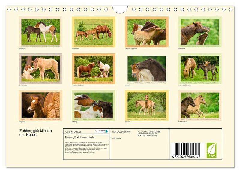 QUALITÄT - Hochwertiger Fotokalender mit 12 wunderschönen Motiven auf lichtbeständigem Bilderdruckpapier, robuste Spiralbindung mit Aufhängebügel.NACHHALTIG - deutliche Abfallreduzierung durch bedarfsgerechte Einzelstückfertigung, umweltfreundliches FSC-zertifiziertes Papier, Produktion in Deutschland, klimabewusste Logistik.PERFEKTES GESCHENK - Kalender für Freunde und Familie, für Kinder und Erwachsene, jung und alt, zu Weihnachten, Geburtstag oder zwischendurch.VIELFALT - Bildkalender in verschiedenen Formaten, z.B. DIN A5, DIN A4, DIN A3 sowie DIN A2. Ob Naturmotiv, Gemälde oder Fotos, ideal für ein persönliches Wohlfühlambiente.Neugierige, spielende Fohlen im Schutze der Herde von Autor(in): Brinja Schmidt