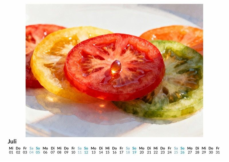 Jede Zutat erzählt eine Geschichte, jede Komposition weckt Emotionen. Der Kalender "Food-Galerie" fängt diese Momente ein und verwandelt alltägliche Speisen in visuelle Erlebnisse. Die Motive zeigen die Schönheit, die in der Welt des Essens verborgen liegt, von der feinen Textur einer Frucht bis zum Zusammenspiel der Farben auf einem angerichteten Teller. Dieser Kalender ist eine ideale Wahl für: Liebhaber von kulinarischer Ästhetik und anspruchsvollem Design. Kreative, die einen stilvollen Blickfang für Küche oder Essbereich suchen. Alle, die ein besonderes Geschenk für Gourmets und Hobbyköche finden möchten. Die zwölf Monatsmotive präsentieren eine sorgfältige Auswahl an Speisen und Zutaten. Jedes Bild, eine Komposition aus Licht, Textur und Farbe, wurde durch einen innovativen digitalen Prozess erschaffen, der die Grenzen der visuellen Darstellung neu definiert. So entstehen Ansichten, die vertraut und zugleich neuartig wirken und den Betrachter dazu einladen, die Details zu erkunden. Mit dem Kauf dieses Kalenders kann man Folgendes erwarten: Zwölf detailreiche Monatsmotive aus der Welt der Kulinarik. Ein praktisches Kalendarium, das sich harmonisch in das Gesamtbild einfügt. Eine monatliche Inspiration, die die Schönheit von Lebensmitteln feiert. Der Kalender "Food-Galerie" ist eine Hommage an die visuelle Kraft von Lebensmitteln. Er begleitet durch das Jahr mit Kompositionen, die den Blick für das Detail schärfen. Eine Entdeckungsreise durch die einzelnen Monatsmotive lohnt sich.