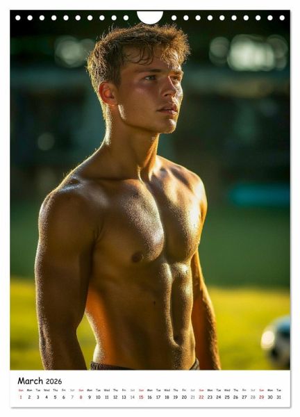 Discover the captivating allure of young, muscular footballers as they dominate the pitch with confidence. This unique men's calendar showcases toned boys in action, blending sport and sensuality in each frame. Ideal for fans of gay art and those who appreciate athletic male physiques, the images highlight both strength and passion. These striking visuals, generated with advanced AI technology, bring a fresh, exciting edge to the traditional football calendar. Perfect for lovers of fitness, sport, and the male form, offering a celebration of youthful energy and masculine beauty.