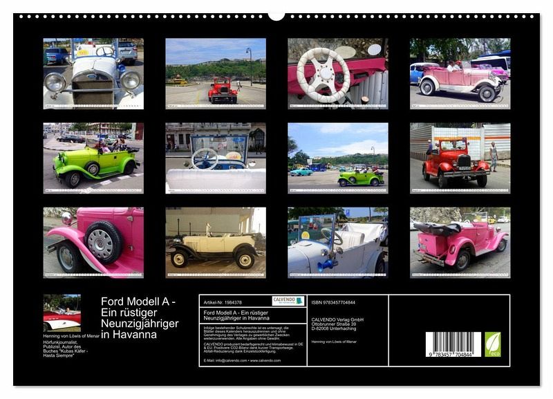 PREMIUM-LINIE - Brillanter Fotokalender mit 12 wunderschönen Motiven, Kunstdruck in Hochglanz in Museumsqualität.QUALITÄT - edle Materialien, stabile Rückwand mit 2 innovativen Einstecktaschen für eine optimale Präsentation an der Wand.NACHHALTIG - deutliche Abfallreduzierung durch bedarfsgerechte Einzelstückfertigung, umweltfreundliches FSC-zertifiziertes Papier, Produktion in Deutschland, klimabewusste Logistik.PERFEKTES GESCHENK - Kalender für Freunde und Familie, für Kinder und Erwachsene, jung und alt, zu Weihnachten, Geburtstag oder zwischendurch.Der US-Oldtimer Ford Modell A unterwegs in Havanna von Autor(in): Henning von Loewis of Menar
